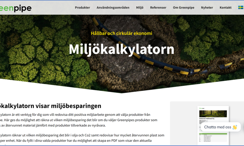 Det har den varit ända från starten när Greenpipe bildades för 20 år sedan. Vi tycker det är viktigt att man kan påvisa vilken miljöbesparing man kan göra genom att återanvända material. Därför har vi tagit fram Greenpipes miljökalylator.